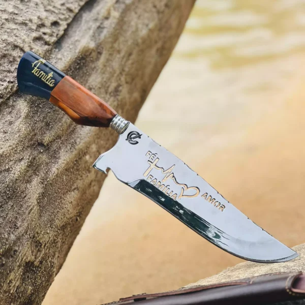 Faca Artesanal Fé Amor e Família – Cutelaria Forjada Á Mão – Para Quem Faz A Diferença