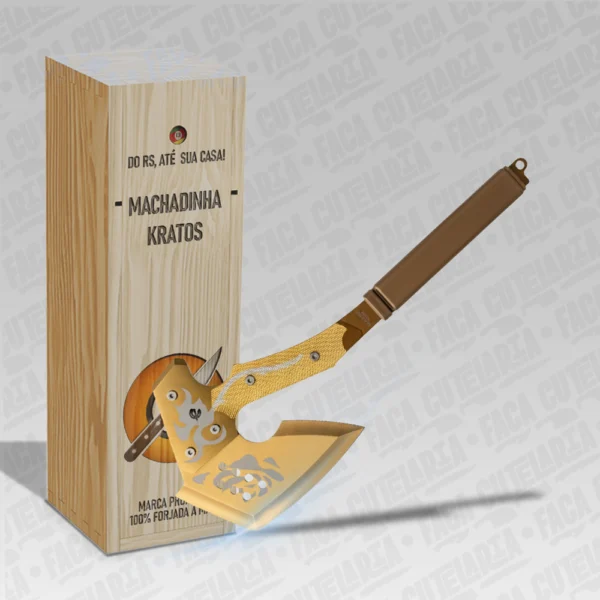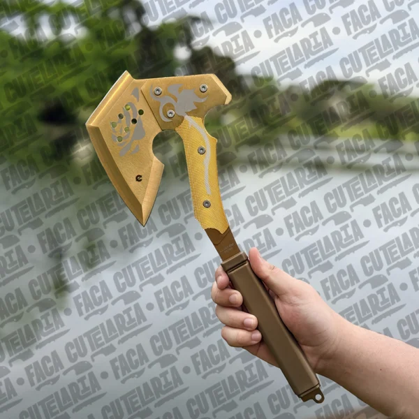 Machadinha Kratos Tática Dourada Tomahawk – Aço Inox 420 Cutelaria + Garantia