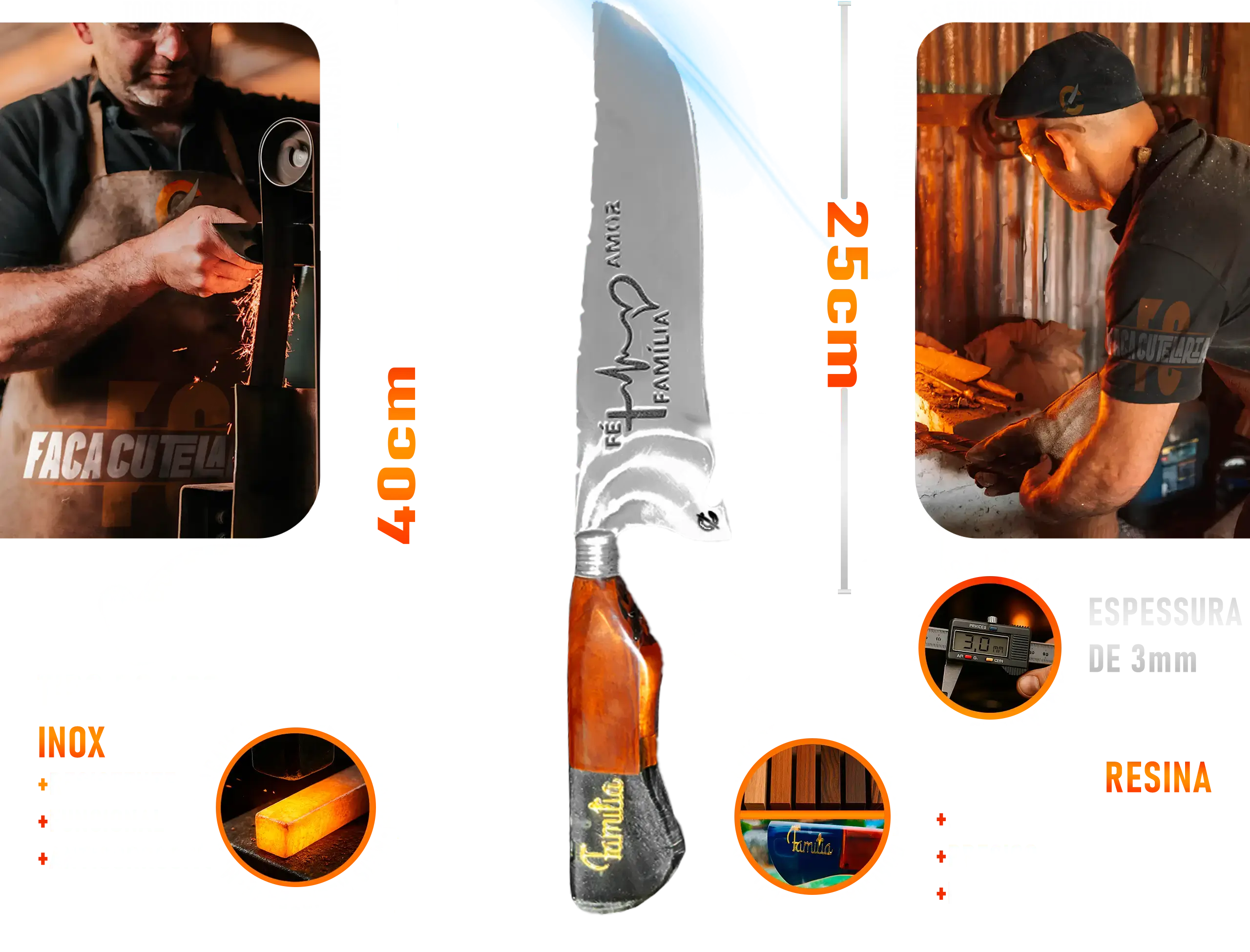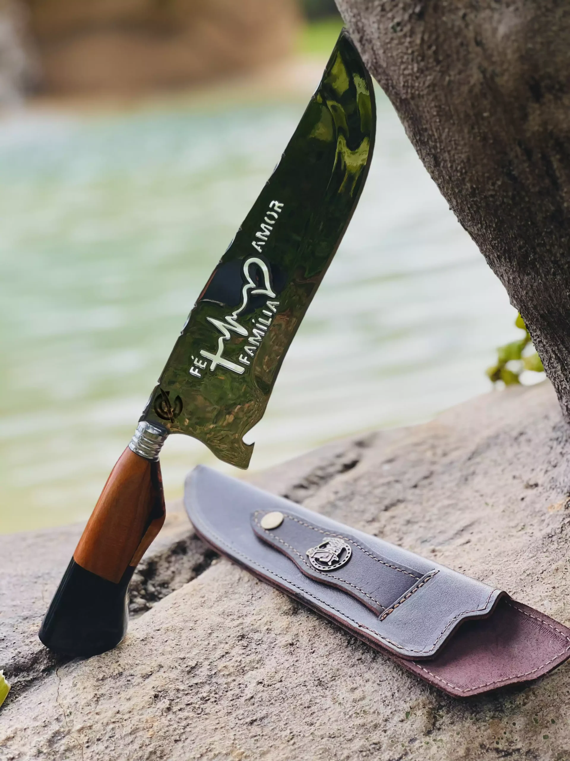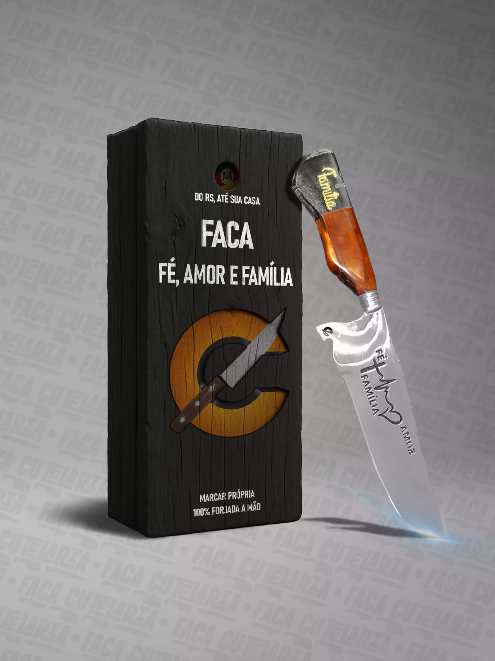 Faca Artesanal Fé Amor e Família – Cutelaria Forjada Á Mão – Para Quem Faz A Diferença