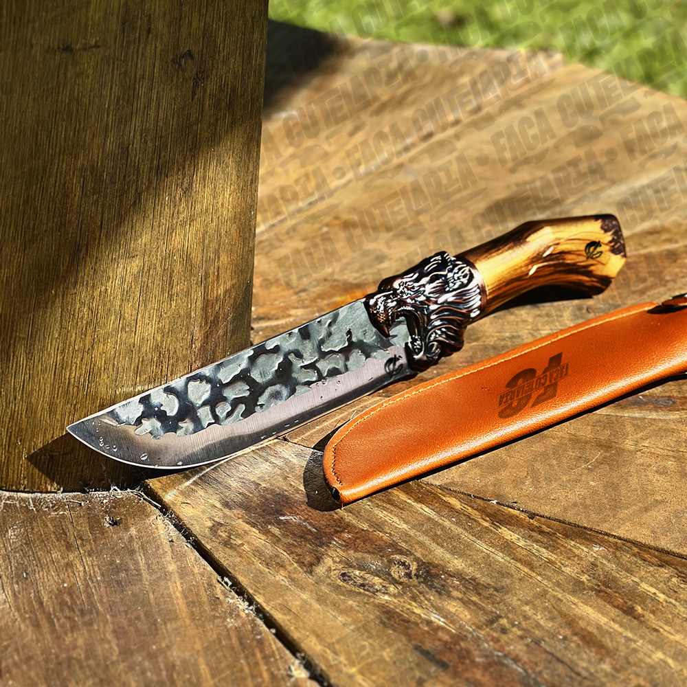 Fabricada com precisão artesanal, a Faca Lion® é feita para quem valoriza qualidade e desempenho. Com madeira nobre e resistente em seu cabo, proporciona uma pegada firme e confortável, enquanto a lâmina de aço inox 420c premium garante um corte preciso e eficiente.