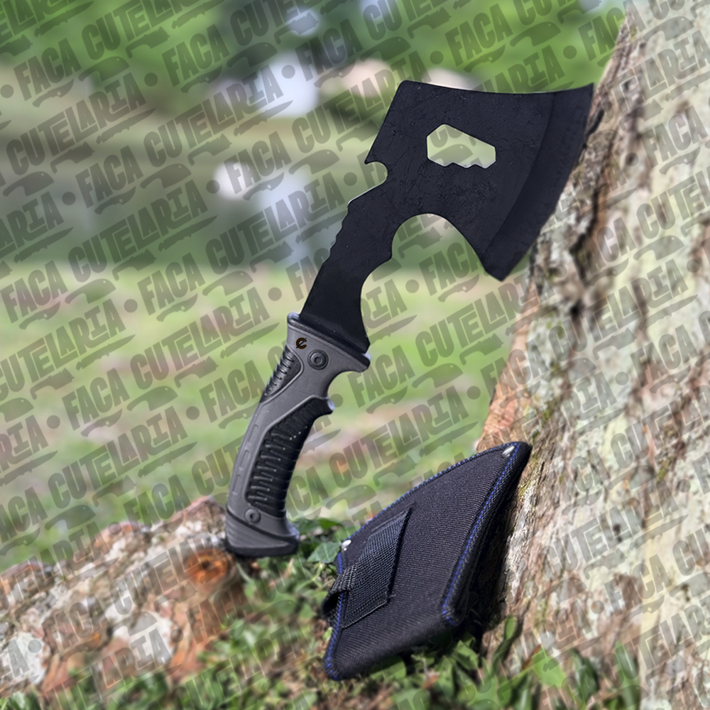 Machadinha resistente e funcional, ideal para camping, pesca e atividades outdoor. Seu design proporciona firmeza no manuseio e eficiência no corte, enquanto a lâmina afiada garante praticidade e ótimo desempenho em diversas situações.