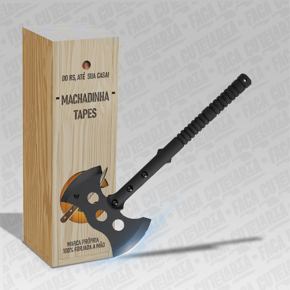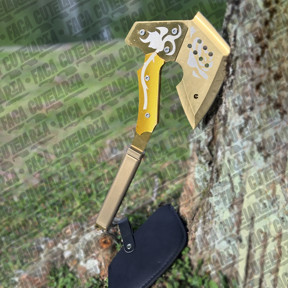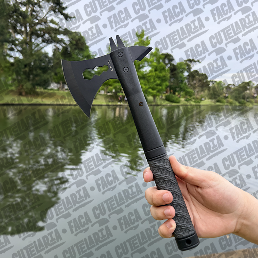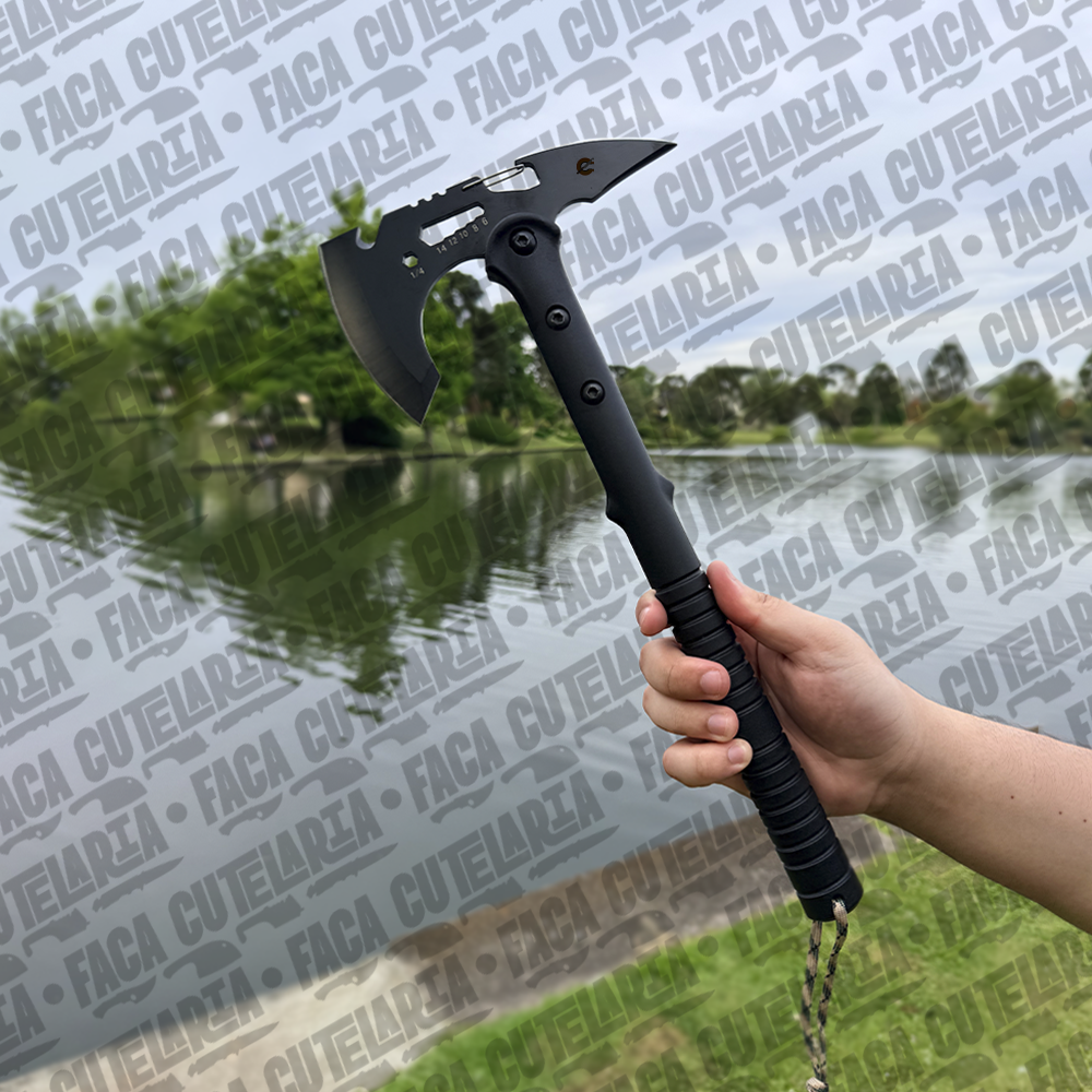 Machadinha resistente e funcional, ideal para camping, pesca e atividades outdoor. Seu design proporciona firmeza no manuseio e eficiência no corte, enquanto a lâmina afiada garante praticidade e ótimo desempenho em diversas situações.