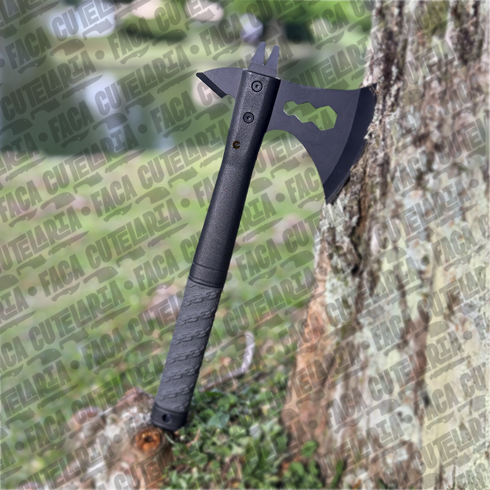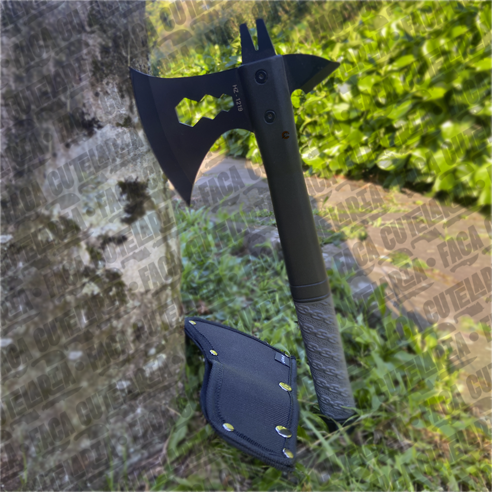 Machadinha resistente e funcional, ideal para camping, pesca e atividades outdoor. Seu design proporciona firmeza no manuseio e eficiência no corte, enquanto a lâmina afiada garante praticidade e ótimo desempenho em diversas situações.