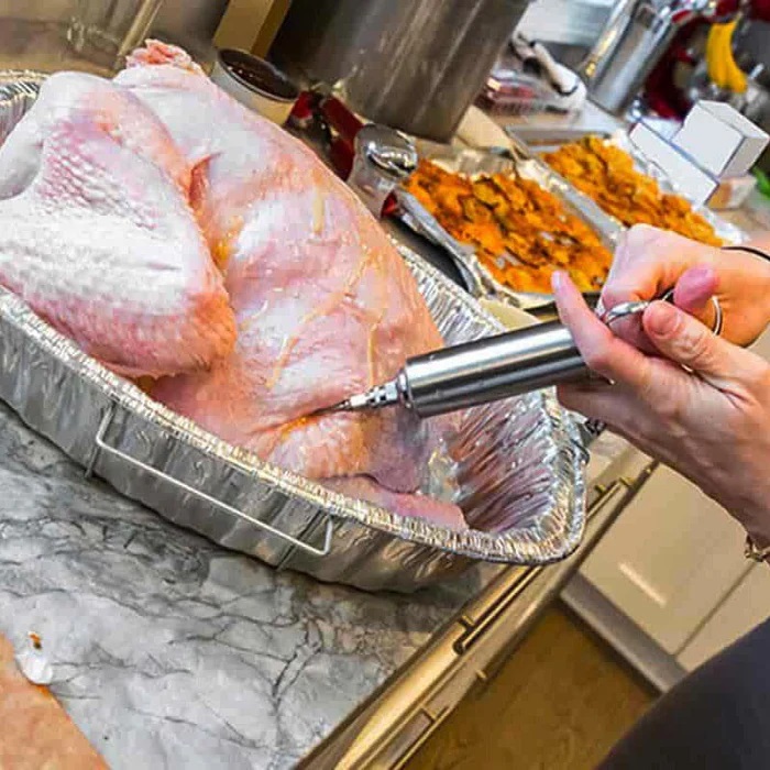 Sinta o Sabor: nosso injetor de tempero é perfeitamente trabalhado para fazer cada mordida da carne ser saborosa e suculenta. Para o injetor de alta qualidade também intensificar sabores de datas especias como Peru de Natal, Carnes Bovinas, Carne Suína, Frangos e Outros. Injetor de carne garante que você nunca tem que se contentar com alimentos secos ou sem graça.